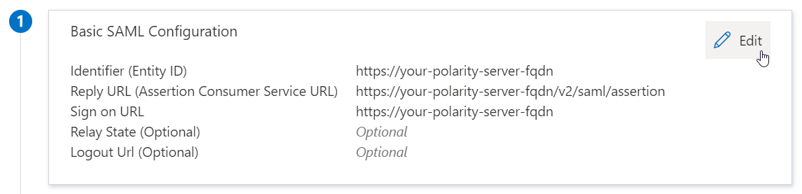 In the "Basic SAML Configuration" block, click on the "Edit" icon