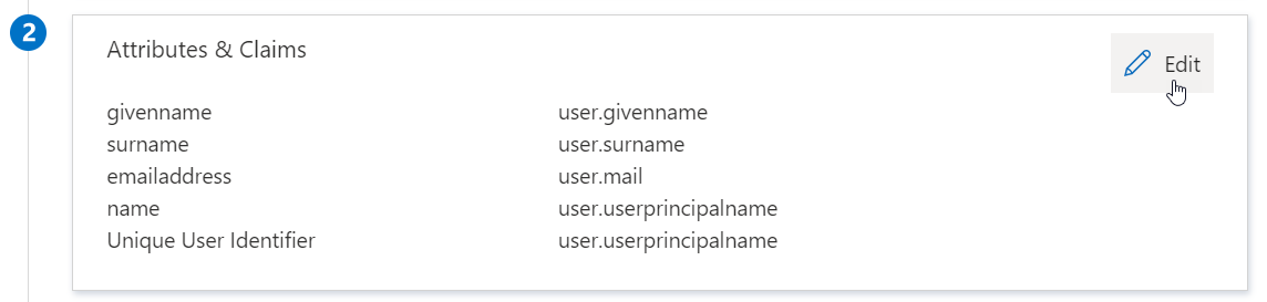 Next click on the "Edit" button in the "Attributes & Claims block.