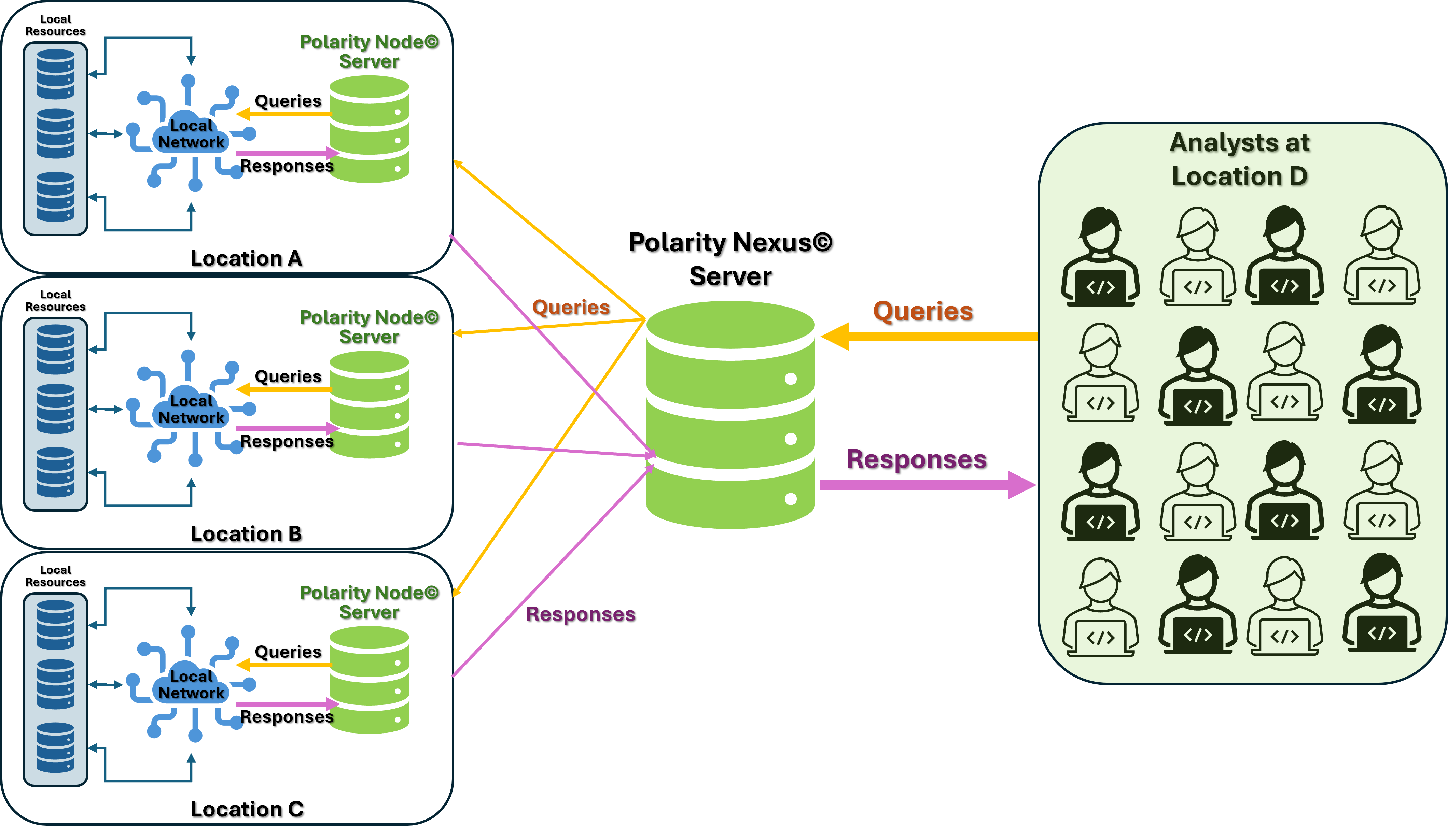 The basis of the Polarity Nexus© architecture is the Polarity Integration Broker© utility. This utility allows a Primary Polarity Server to proxy integration requests to one or more secondary Polarity Servers, referred to as “Brokers”.